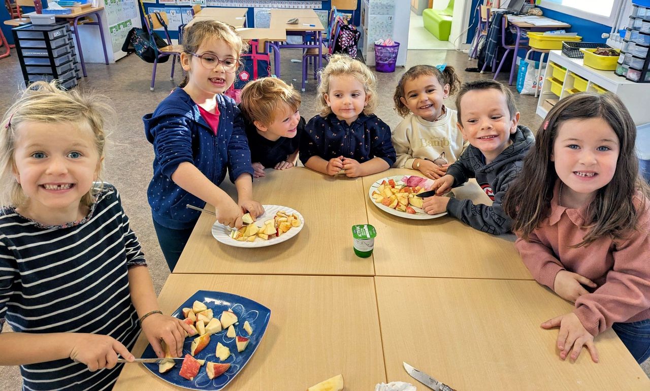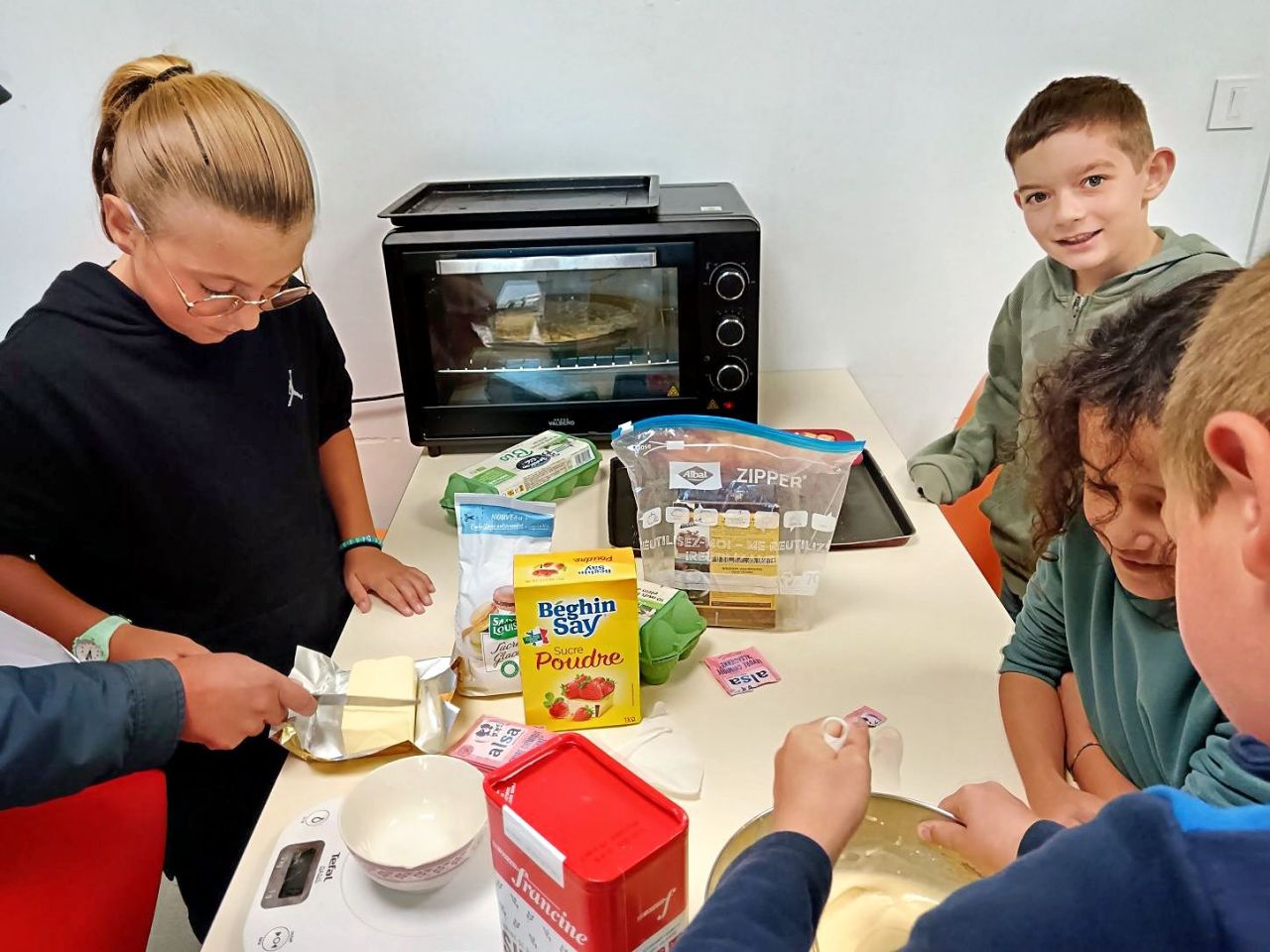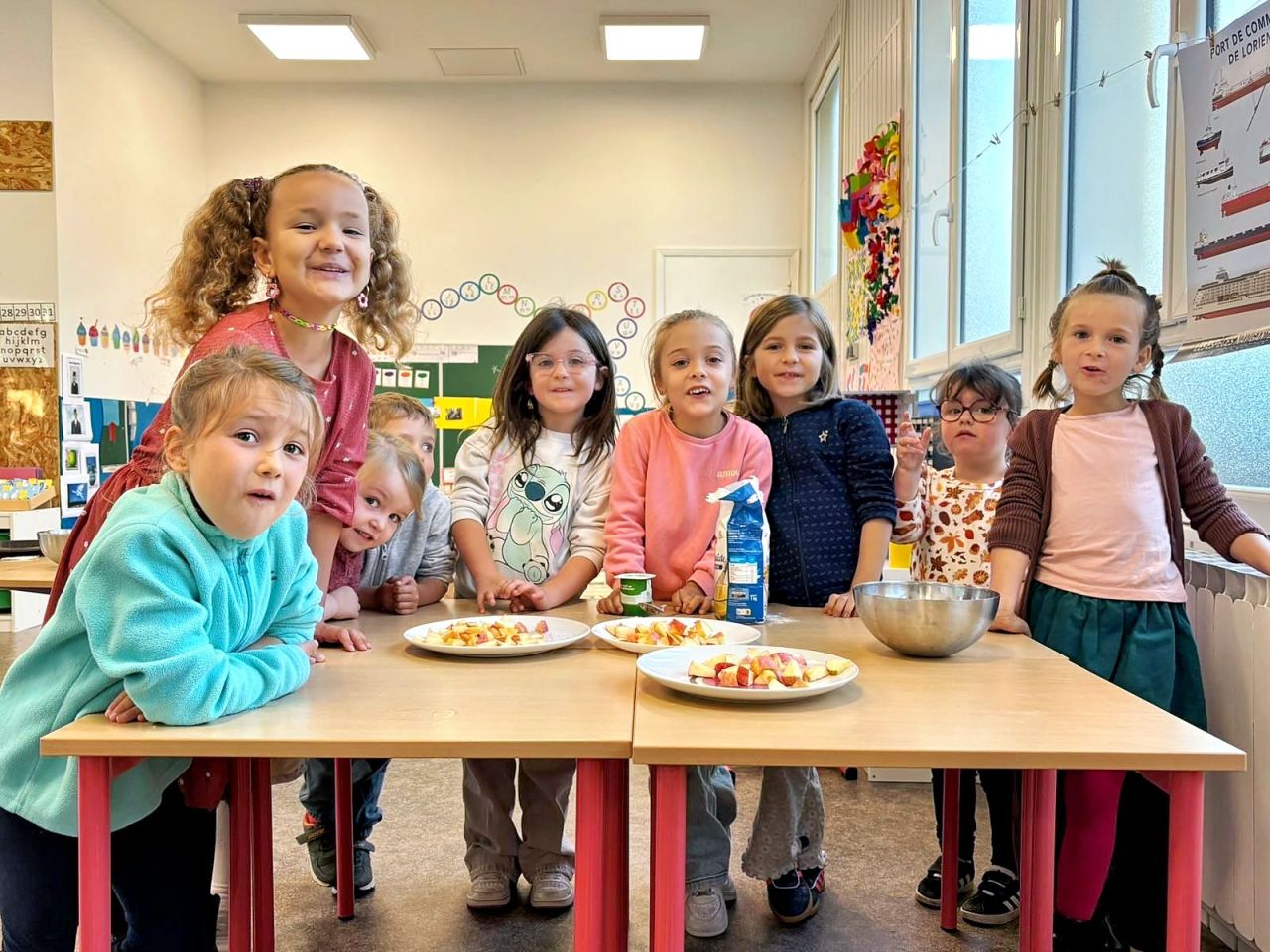 Comme chaque année, la semaine avant les vacances de la Toussaint, c'est la semaine du goût. Cette année, les maternelles- CP et CE1 ont travaillé sur les différentes saveurs. Ils ont testé certains fruits et légumes et ressenti s'ils étaient sucrés ou salés, acides ou amers. Les CE2-CM ont travaillé sur les spécialités régionales et ont pu les rajouter sur leur grande carte de France. Vendredi, chaque classe a cuisiné : gâteau aux pommes, tiramisu, cake à la vanille, cupcakes...